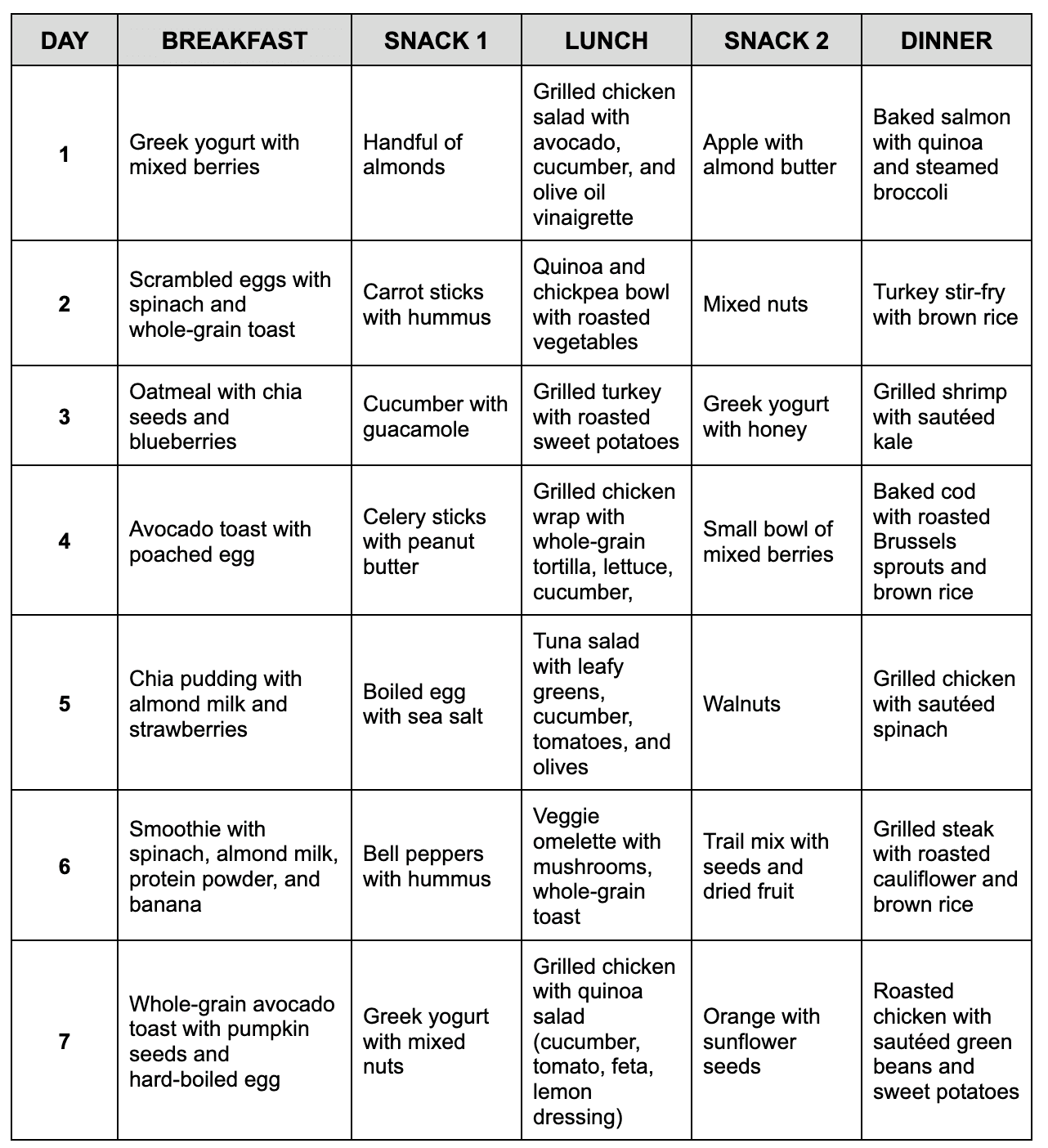 Consult your doctor or dietitian for personalized meal plans. For your reference, a sample one-week meal plan incorporating the recommended foods we’ve discussed is provided below.