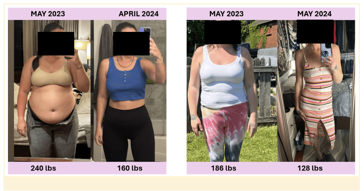 Here are some real photos of Wegovy users who have seen gradual progress over a year. These photos highlight the fat reduction around the body and depict how much weight is lost over time.