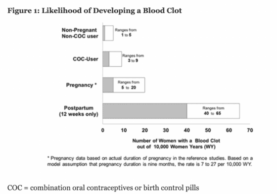 Birth control can also increase your risk of blood clots from 1-5 clots/ 10 000 women years, to 3-9 clots / 10 000 women years. (Center for Drug Evaluation and Research, 2012). If you didn’t know, pregnancy also increases your risk of blood clots to 5-20 clots/ 10 000 women years – thats a 6-10x increased risk! (Center for Drug Evaluation and Research, 2012). What this means is – you’re loading up the chances of blood clots by smoking (regardless of method) and by taking birth control.