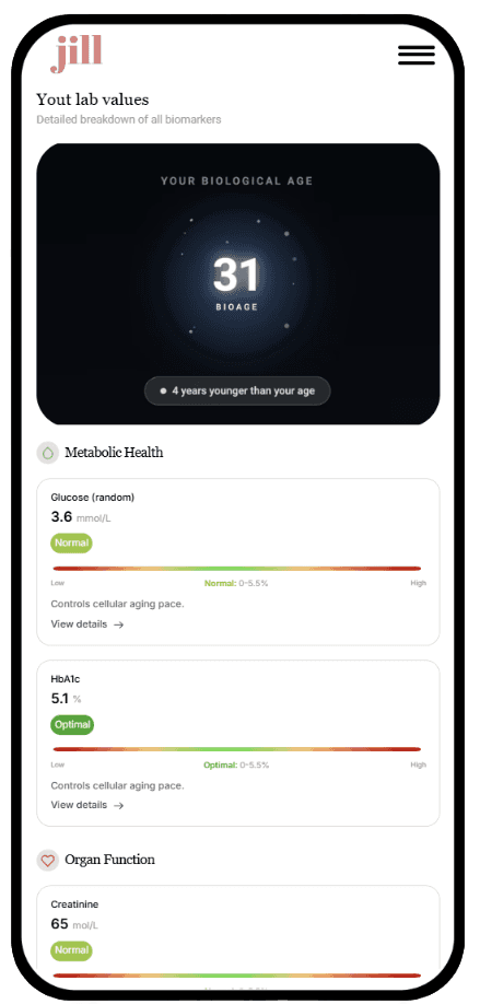 Easy-to-read longevity markers, know how your hormones, thyroid, and metabolic health are shifting over time.